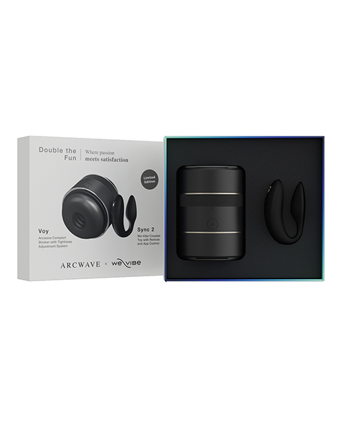 Where passion meets satisfaction. Arcwave Voy manual stroker with Tightness Adjustment System and We-Vibe Sync 2 adjustable couples vibrator with app connectivity. Two Year Warranty. App-enabled