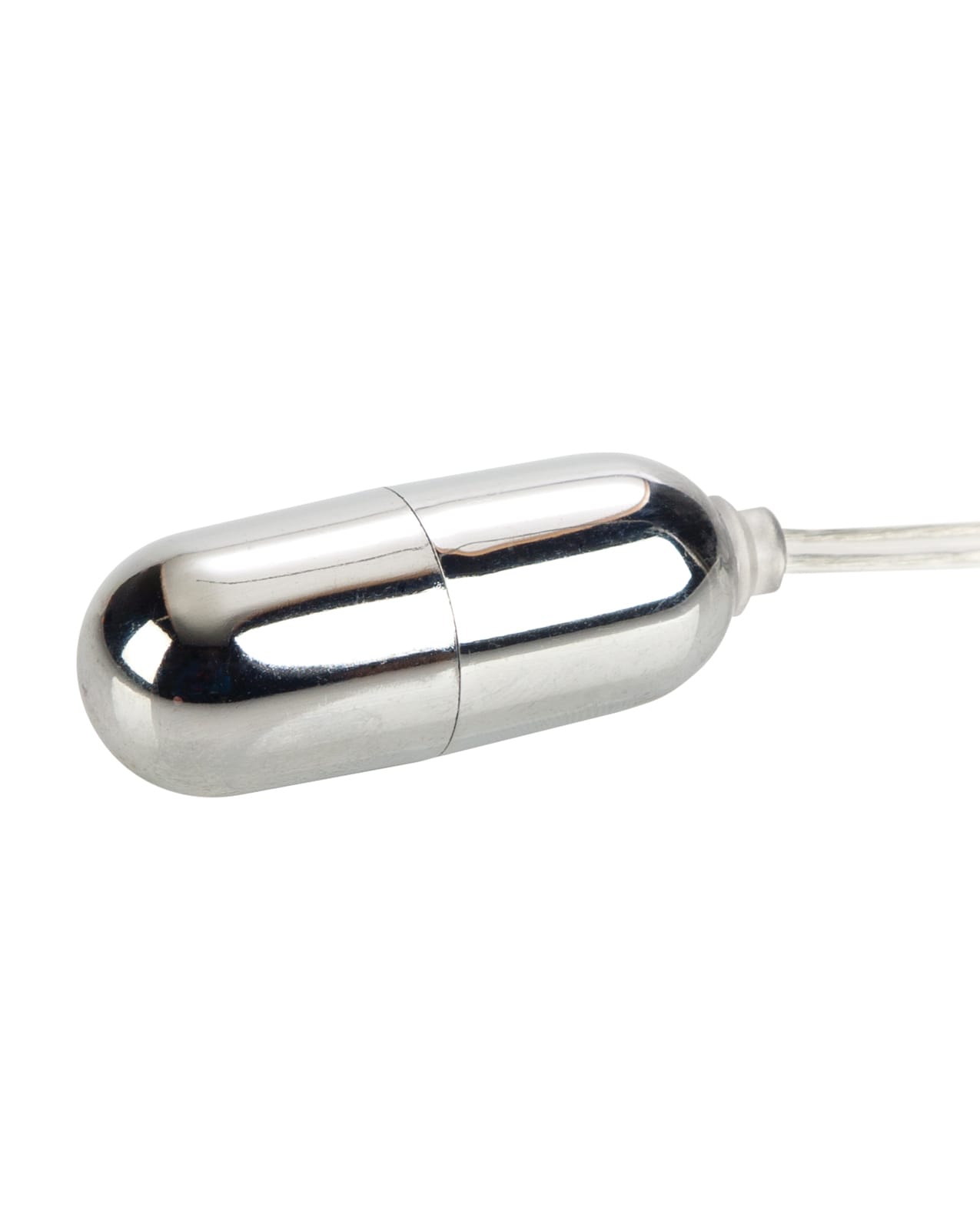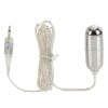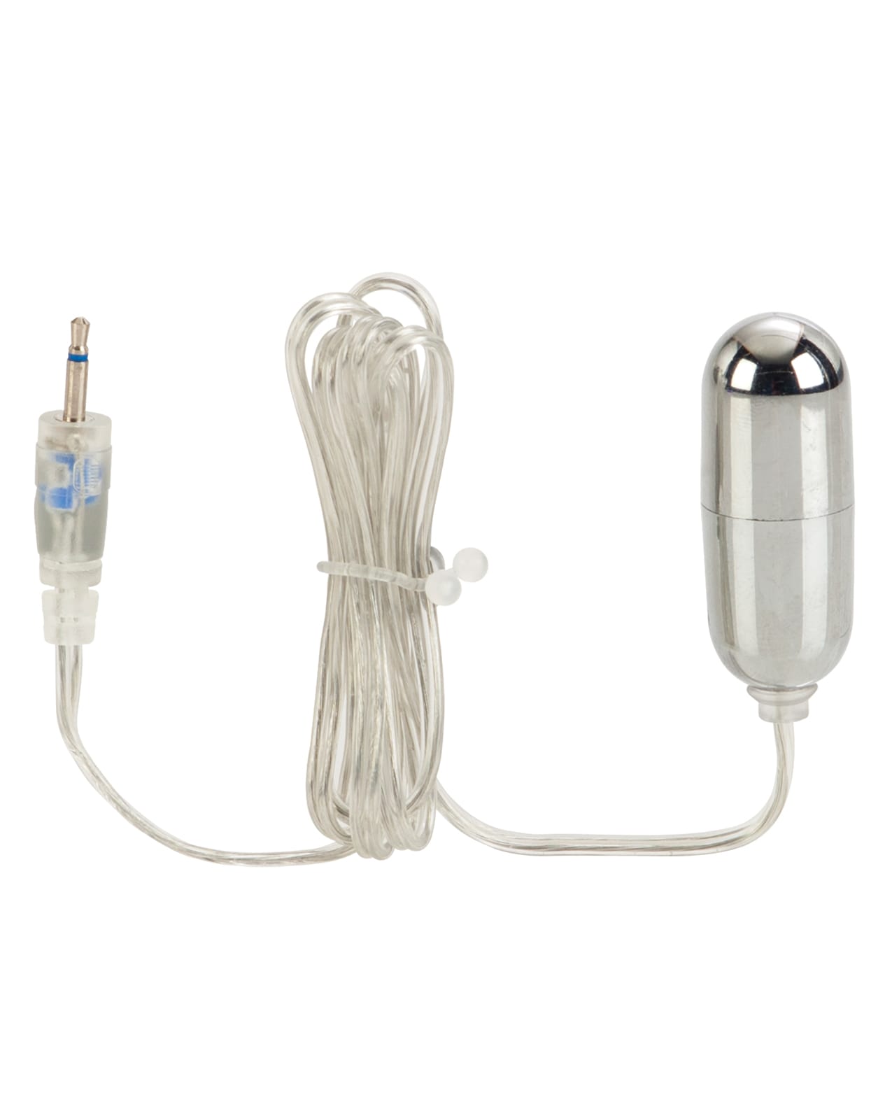 The contouredstimulator measures a discreet 1.6”x .6”/4 cm x 2 cm, and is made from durable ABS with silver plating. The slender vibrating bullet has a plug-in jack that attaches to the hand-held ABS controller, with soft touch speed control. To power up tantalizing sensual tingles and orgasmic sensations, insert 2 AA batteries into the battery pack and prepare for heightened satisfaction. For use with your favorite intimate toy, simply insert the removable vibrating bullet into the toy’s flexible sleeve, and activate the intensely pleasurable good vibrations.
