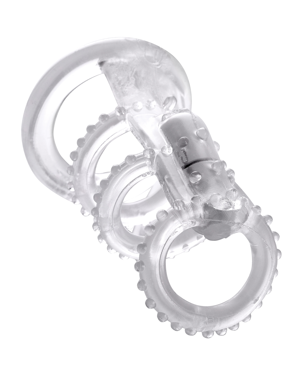 The Vibrating Cock Cage is the ultimate erection enhancer! With four super stretchy rings wrapping around every inch of your manhood, you’ll maintain rock hard erections and prolong the fun while you stimulate your partner. Hidden on top of the cage is a powerful cordless micro vibe that delivers incredible internal thrills with each thrust. You’ll enjoy thick, throbbing erections and your partner will love the cage’s added sensations.