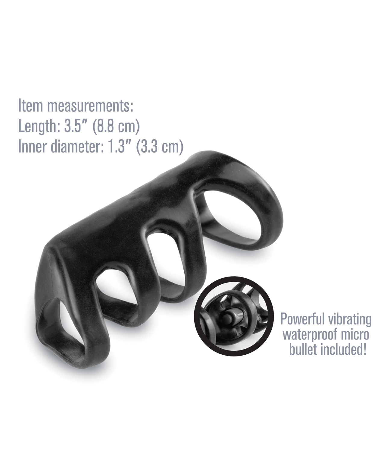 The Vibrating Power Cage is the ultimate erection enhancer! With four super stretchy rings wrapping around every inch of your manhood, you’ll maintain rock hard erections and prolong the fun while you stimulate your partner. Hidden inside the cage is a powerful cordless micro vibe that delivers incredible internal thrills with each thrust. You’ll enjoy thick, throbbing erections and your partner will love the cage’s added sensations.