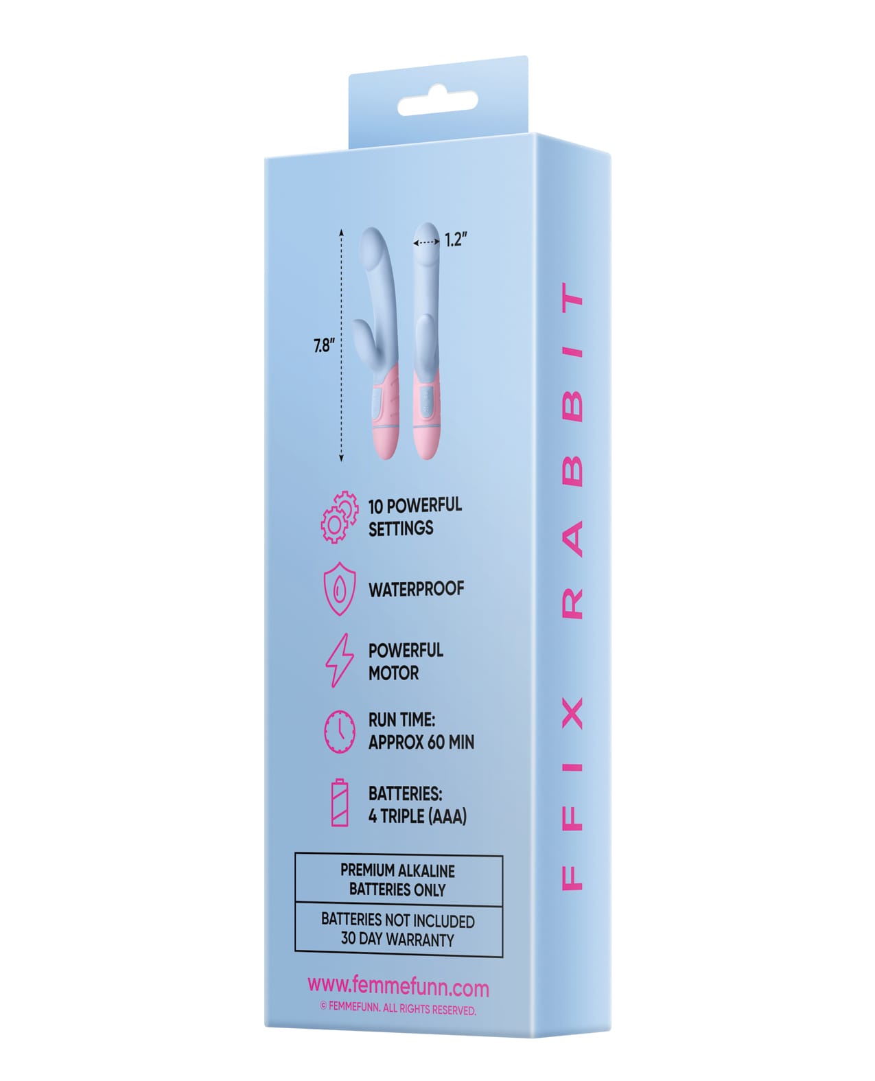 ffix by Femme Funn. Powerful grab & go battery operated toys for quick & easy pleasure. Enjoy blended orgasms like never before . With 20 powerful vibration modes and an even more powerful boost mode, this waterproof, battery-powered rabbit vibrator will become your new fix.