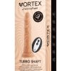 Turbo Shaft from our Vortex Series .Vortex series is our most traditional pleasure set. Sculpted to replicate the human body. Its realistic feel and sculpted g-spot precision will bring you to life with 8 vibration modes and 360 degree motion. Its Turbo button will surge you to climax. Premium liquid silicone. USB rechargeable. Wireless Remote Control. Standby mode. Harness Compatible. Dimensions: 8.2 inches long, 7.7 inches insertable, 1.5 inches wide.