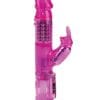 Made from smooth, pliable phthalate free PVC, the discreet massager measures 4.75″ x 1.5″/12cm x 3.75cm. The vibe has a transparent jelly shaft, with 5 rows of metal beads rotation, and a super soft, curvy bunny shaped clitoral teaser, with flickering ears for intense stimulation. To maximize the pleasure, the easy to use massager boasts 3 vibration speeds and 3 speeds of reversible shaft rotation. To intensify the sensations it is recommended that you use a quality lube.