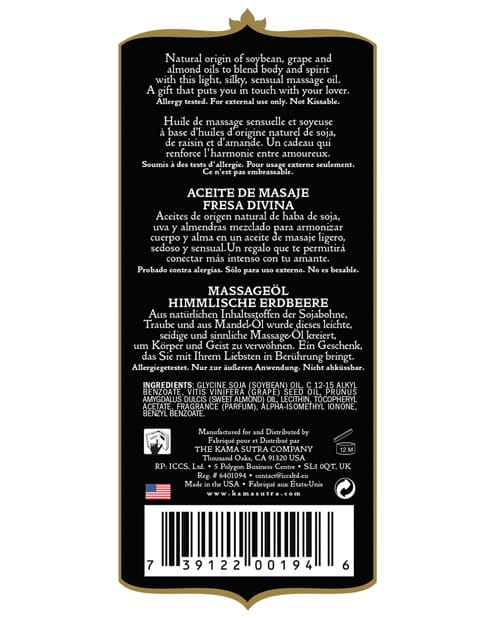 Kama Sutra’s Natural Massage Oil is made with natural ingredients, blending the essence of fresh fruit with a special blend of body oils to create the perfect treatment for body and spirit. Kama Sutra Naturals offer the very best of nature’s gifts to connect you with your lover, and help to be at one with nature. Natural Strawberry. 8 oz/236 ml bottle.