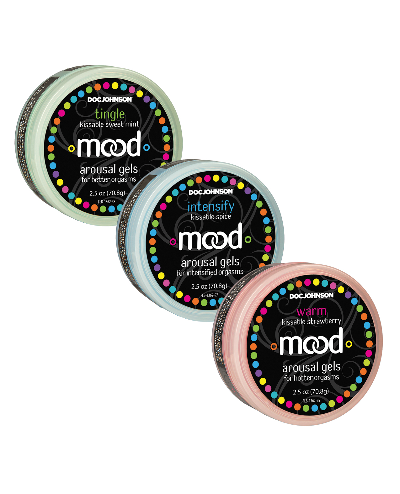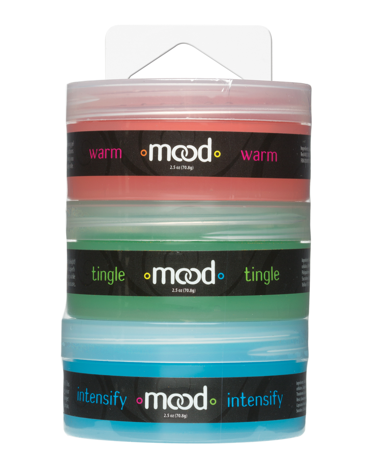 Finally, an arousal gel for every mood! Our new MOOD Arousal Gels come in a 3-pack of 2 oz. containers and are absolutely perfect diverse and amazing foreplay sessions. “Warm” brings the heat, “Tingle” creates a stimulating buzz, and “Intensify” enhances every sensation. Each container is even packed with its own tasty flavor; includes “Warm” Mint, “Tingle” Strawberry, and “Intensify” Spice. All flavors are delectably lickable.
