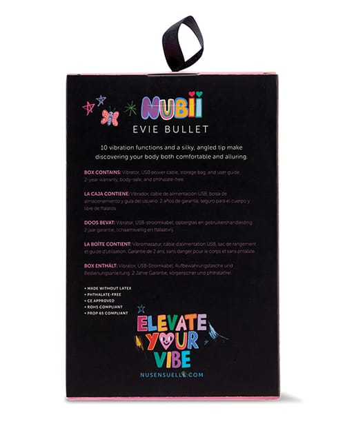Always a trendsetter, Evie helped pave the way for affordable luxury. This lipstick-shaped bullet’s 5 speeds and 5 modes empower our fashion-forward users to be fearless and embrace their sexuality in a fun, flirty way. The bullet’s smooth, tapered design elevates the user’s level of comfort while experimenting with external stimulation. Not to mention, Evie is USB-rechargeable, 100% body safe, water submersible, and powered by our buzzy Nubii motor. Like our other Nubii products, Evie allows new users to purchase toys of superior quality at a more attractive price. Two Year Warranty.