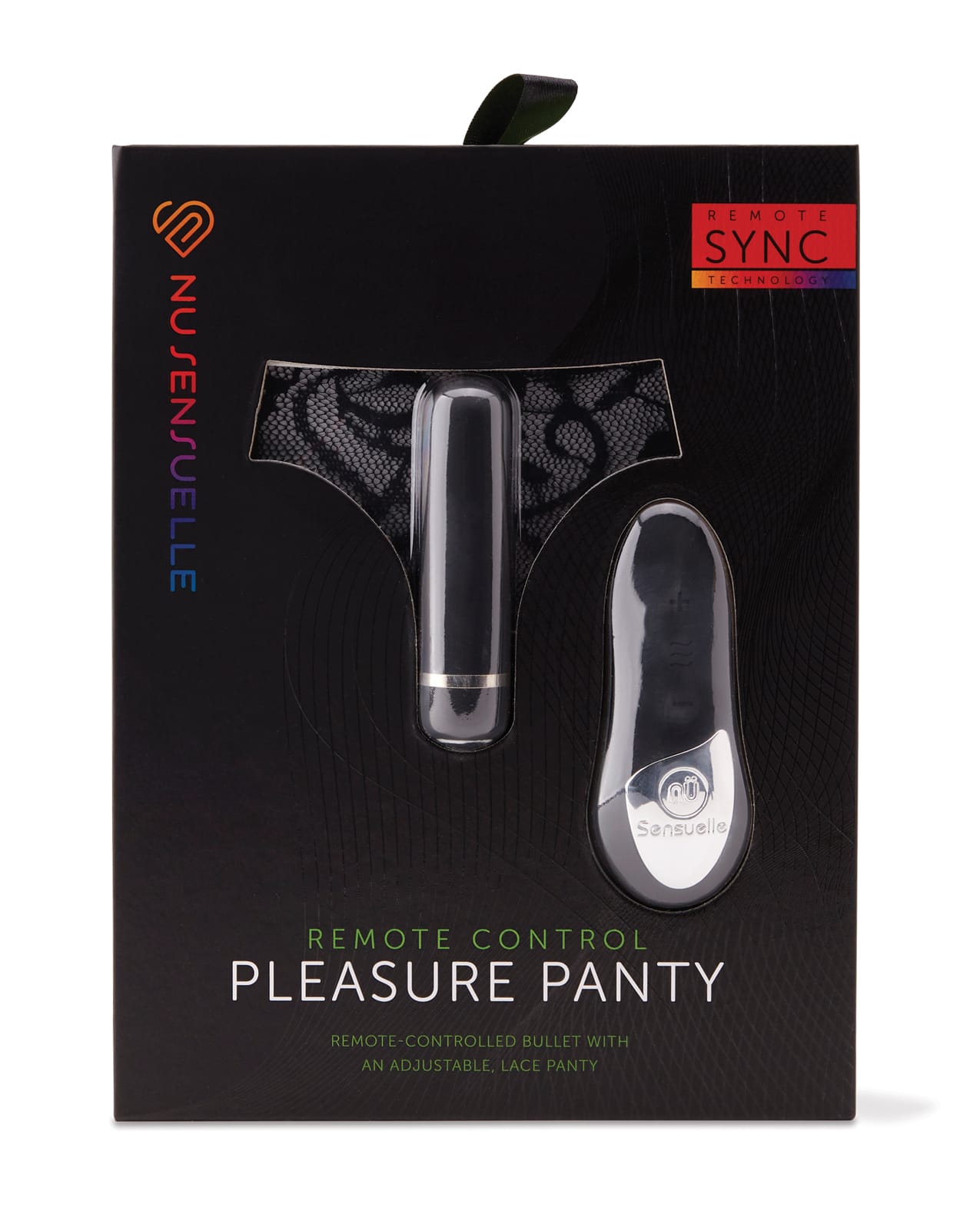 Next time someone asks “who are you wearing,” tell them Nu Sensuelle! Our one-size-fits-most Pleasure Panty literally puts the party in your pants. Keeping you buzzing is our incredibly powerful, yet discreet 15-function bullet vibrator. Simply tuck the bullet into the panty’s specially designed pocket and you’re off. Whether you take the show on the road or simply enjoy it at home, our Pleasure Panty can be your little secret – that is unless you want to share. That’s why we added a remote that can let your partner take control of everything your experiencing down there. And, btw, the remote can even vibrate in sync with the bullet, allowing BOTH of you to experience the fun. It’s two toys in one! Two Year Warranty.