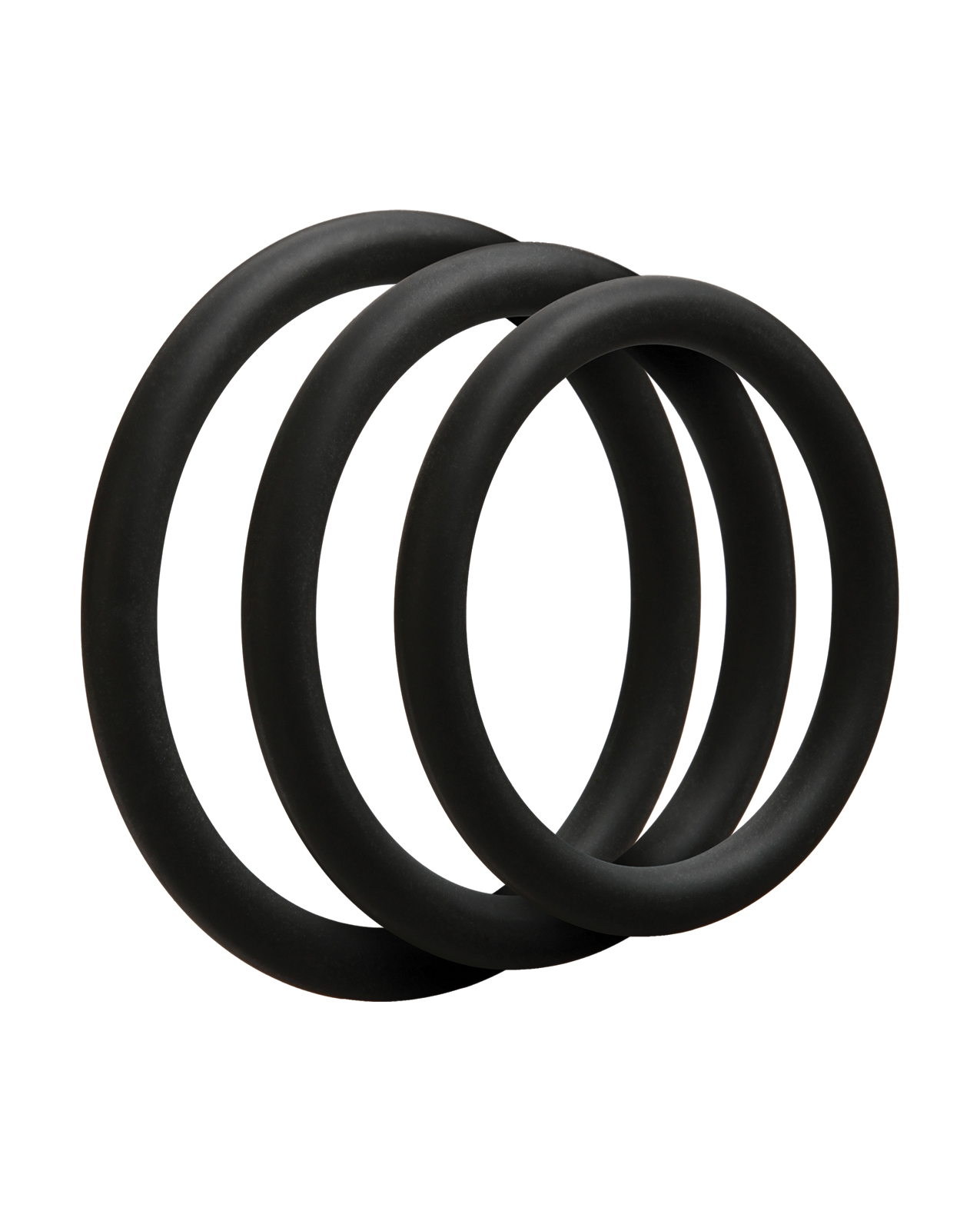 Optimize your experience with these silicone cock rings! The OptiMALE™ Thin C-Ring Set offers enhanced size and girth with three rings in 40mm, 45mm, and 50mm diameters. These rings are ultra-stretchable for easy use around the shaft or testicles, maintaining those long-lasting erections you’ve always dreamed of, and prolonging your ejaculation. Available in Black and Slate; phthalate-free silicone.