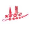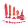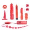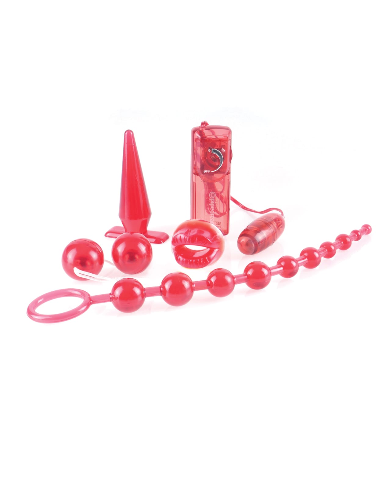 Take pleasure to the extreme! This incredible collection of wall-bangin’ best sellers is sure to please. Everything you need for an evening of excitement is included: a waterproof multi-speed bullet, a slim multi-speed vibe, a jelly tapered butt plug, soft jelly sleeves and extensions, duo-tone balls, anal beads, and a super-stretchy cockring to make pleasure last. Get more bang for your buck and more variety!