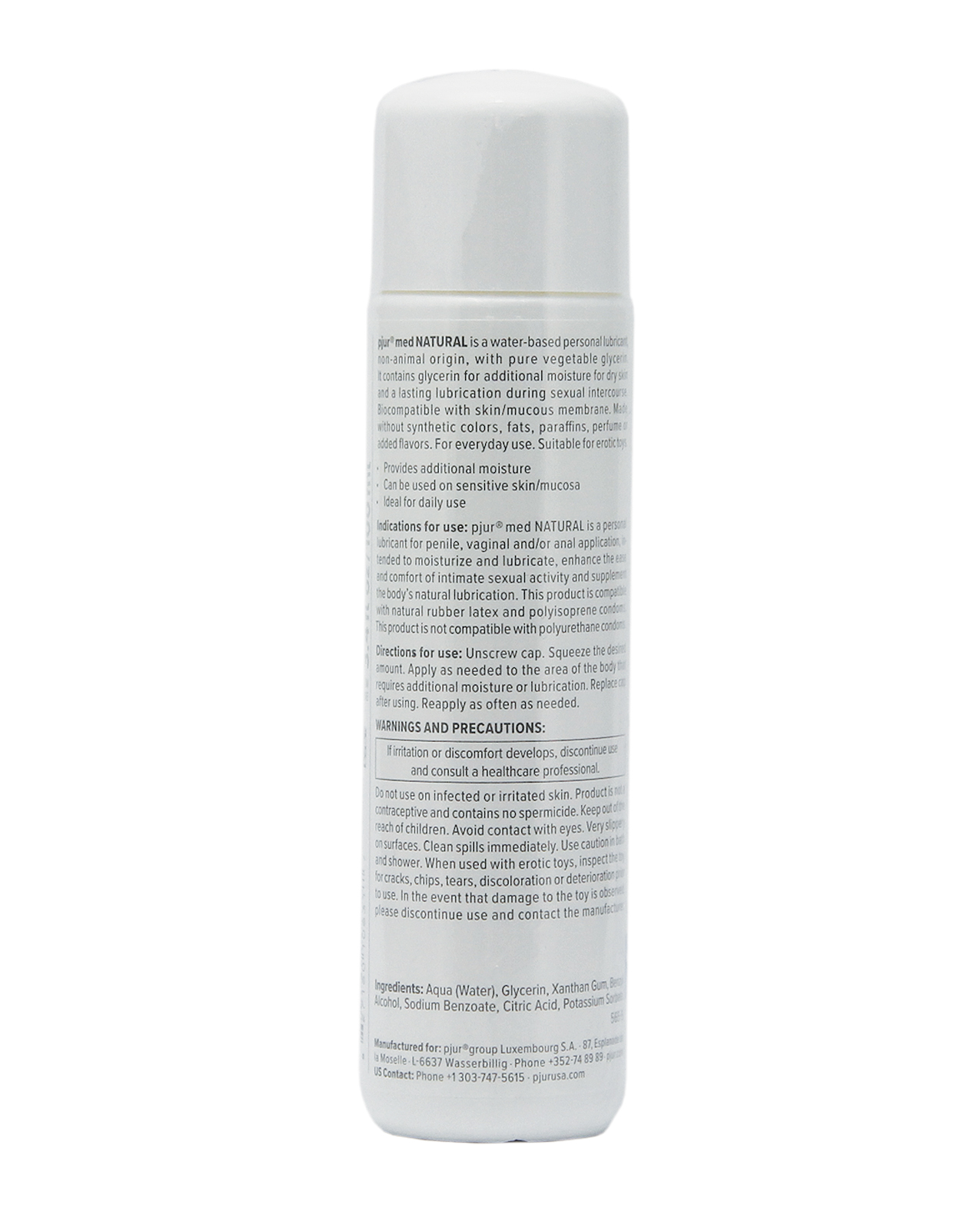 Natural Glide is an extremely gentle water-based personal lubricant with nature-based preservatives to enhance natural lubrication of sensitive skin. This health-conscious personal lubricant is hypoallergenic, latex condom safe, and ideal for daily use. Medical grade ingredients and unique formula make it a natural choice for a gentle water-based personal lubricant.Modern lifestyle products:- a more health-conscious choice- premium personal care- gentle and effective. From Pjur.