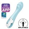 This vibrator offers a unique feature: The tip of the shaft can be inflated step by step at the touch of a button, increasing the diameter by up to 15 mm (from about 4-4.5 cm to 5.5-6 cm). It’s easy to use as it inflates within 12 seconds by continuously pushing the button. Meanwhile, the diameter can be adjusted individually in between. Once you stop pushing the button, double click the button to release the air. On top of that, intensify your orgasms with the sensual pressure of the vibration function. The 12 vibration programs, which are driven by a powerful motor and provide intensive stimulation, can be operated independently. The voluminous shaft with the wide, rounded tip is designed specifically for your G-spot stimulation and brings you the most divine climaxes! The Air Pump Vibrator 5 Connect App has a practical holding ring that fits firmly in your hand even in wild moments and allows intuitive control of the functions via the control panel. The soft, skin-friendly silicone of the vibrator glides gently into you and can be easily cleaned with a damp cloth and some sexual wellness device cleaner. Control the device with our award-winning Satisfyer Connect app: Create your own vibration patterns or let it tremble to lustful music rhythms from Spotify. You can also relinquish control of the vibrator to your love – near or far – and discover even more exciting adventures.. App-enabled.