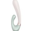The Satisfyer Heat Wave vibrator ignites your passion in a number of ways: There is a powerful motor in its long, slightly voluminous shaft and a clitoral stimulator that seduces your hot spots with deep vibrations. Its curved shape not only ensures intense, deep G-spot stimulation but also generous clitoral stimulation – while the rabbit also causes other erogenous zones such as your labia to tremble. In addition, its shape forms a retaining ring so it won’t disappear even in wilder moments. The heating function of the Satisfyer Heat Wave also really spices things up: Its shaft can be heated up to 102.2 °F (39°C), which increases your pleasurable sensations and your capacity for orgasm and also gives you a body heat sensation. Each motor and the heating function can be controlled independently of one other. With its surface made of tender, medical-grade silicone, this heated vibrator has a particularly loving touch while pleasuring you. In addition to the 12 preset vibration programs, you can use the free Satisfyer Connect app for Android and Apple iOs to customize the Satisfyer Heat Wave according to your needs. Create your own programs, give your partner the control or connect the app to Spotify to let yourself be stimulated to the rhythm of your favorite songs. Like all Satisfyer vibrators, this lover is also waterproof (IPX7) so nothing stands in the way of hot times in the shower or bath! After use, just clean it with lukewarm water and a little mild soap and disinfect it with a special sexual wellness device cleaner. If the Satisfyer Heat Wave run out of steam, simply recharge it with the included USB charging cable. App-enabled.