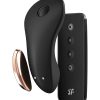 Satisfyer Little Secret: Panty vibrator with remote control and app control. The Little Secret from Satisfyer is a real everyday hero: You attach the clit vibrator to your panties with a magnetic clip, making it ideal for sensual stimulation on the go. The panty vibrator comes in sophisticated black with gold-colored details and lies directly on the clitoris thanks to its ergonomic shape. The powerful but whisper-quiet vibrations mean your Little Secret is also absolutely discreet. It has an impressive, soft surface made of body-friendly silicone that will provide you with a smooth experience with just a few drops of lubricant. And the fun doesn’t have to stop in the shower or bathtub because the Little Secret has a waterproof (IPX7) finish.. Enjoy versatile fun with the Little Secret – thanks to innovative app control The Satisfyer Little Secret can be controlled via the included remote control as well as via the free Satisfyer Connect App, which is available for Apple and Android. So you can use the Little Secret discreetly in your everyday life or let your partner take control. You can also explore new worlds of pleasure with the Satisfyer Connect App: Create your own vibration programs based on surrounding sounds or your favorite playlist. The Little Secret is equipped with rechargeable batteries that can be recharged easily with the included USB charging cable. App-enabled.