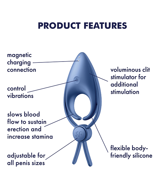 Made from body-friendly silicone and featuring 2 loops, one of which is size-adjustable, the Satisfyer Sniper provides increased blood retention to prolong your pleasure. Additional vibrations stimulate both partners. With the Satisfyer Sniper you can enjoy more stamina and more powerful, longer-lasting and more erections: Two loops, one of which can be individually adjusted to fit snugly, ensure a greater blood retention effect. The adjustable cock ring with a tapering clitoral stimulator also pampers both partners with intensive vibrations during lovemaking. The 12 vibration programs can be easily controlled via the One Touch button and range from gentle to intense.Due to its ease of use and size-adjustable loop, the Satisfyer Sniper is particularly suitable for beginners and anyone who is looking for a perfectly fitting cock ring. Since the adjustable cock ring is made of body-friendly it is particularly supple and flexible. The ring is also waterproof (IPX7) and can also be used in the shower or bath. Easily recharge the device with the included USB charging cable.