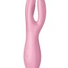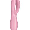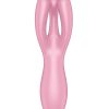 The Threesome 3 lay-on vibrator surrounds and caresses your clitoris and labia altogether. It’s ergonomically shaped with 3 rounded, flexible arms, each of which houses a powerful motor. The two outer arms seduce the labia while the middle arm rests centered on the clitoris and can be pressed down for intensified stimulation.