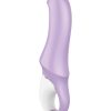 Charming is just one teasing trait this curvaceous, unbelievably versatile violet stimulator from Satisfyer’s brand new Vibes collection has to offer, Perfect for inner or outer sweet spot seeking, the Charming Smile features a sensual curvy shape ready to delve deep or pinpoint clitoris, nipples, head of the penis- any body part craving sexy attention, in other words. We adore the looped handle that helps with maneuvering and keeps the Smile close as things heat up. Twelve deep, throbbing modes of synchronized vibration rumble powerfully through the Charming Smile’s seriously smooth surface at the touch of a button. The center button activates the motor, while the ones above and below cycle up and down through each stimulation option. That’s right, you’ll be able to step back or forward through the vibration patterns without starting from scratch. Waterproof. Material: Silicone Color: Purple USB rechargeable: 3.5 hours of charge time will run the Smile for up to 50 minutes. Specifications Length: 7.5″ Insertable Length: 4.25″ Girth: 5.5″ at largest point Width: 1.75″ at largest point