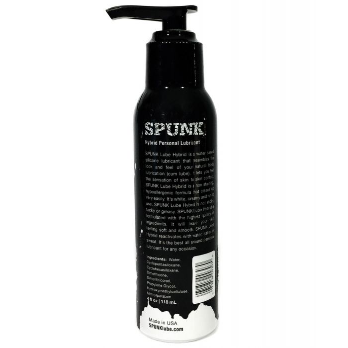 SPUNK Lube Hybrid is a water based hybrid lubricant that looks and feels like CUM. It’s white and creamy, and feels unlike any other lubrication available. With SPUNK Lube Hybrid you get the best of both worlds. Lube that lasts long like silicone and cleans up easily like water. SPUNK Lube Hybrid is condom friendly, safe to use with all sex toys, and it won’t stain your sheets or ruin your gear. SPUNK Lube Hybrid is silky smooth and long lasting. It doesn’t get sticky and it doesn’t smell or taste like chemicals. SPUNK Lube Hybrid is the perfect all around personal lubricant for any occasion.