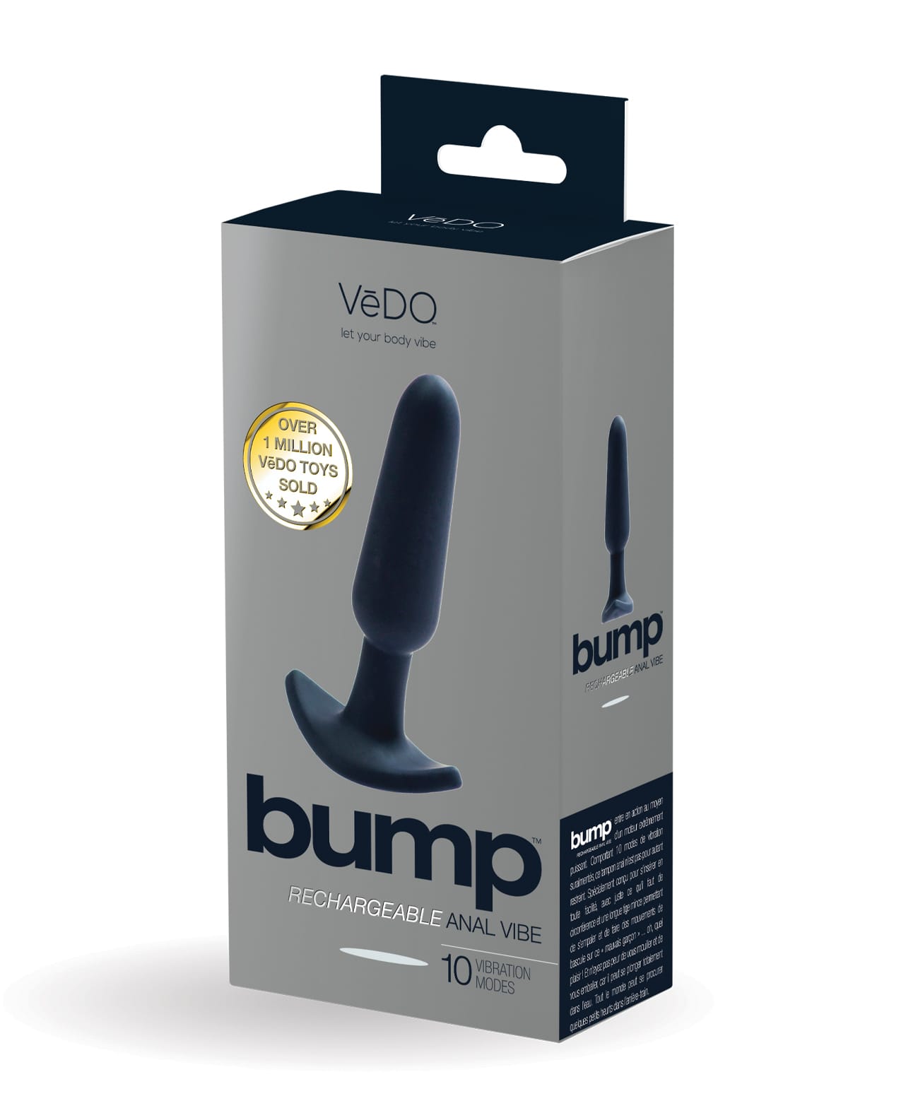 Bump rechargeable anal plug slides into action with an extremely powerful motor. Boasting 10 supercharged vibration modes, this anal plug takes no prisoners. Specifically designed for easy insertion with just enough girth and a long thin shaft to make rocking on this badboy… oh so pleasurable. And don’t be afraid to get wet and wild because it’s completely water submersible. Everybody can use a little bump in their bum. Material: Silcone Color: Black USB rechargeable (Cord included) run time: 1 hour Dimensions: length: 12.7cm max diameter: 3 cm. Travel lock feature with manual in box.• 100% Silicone