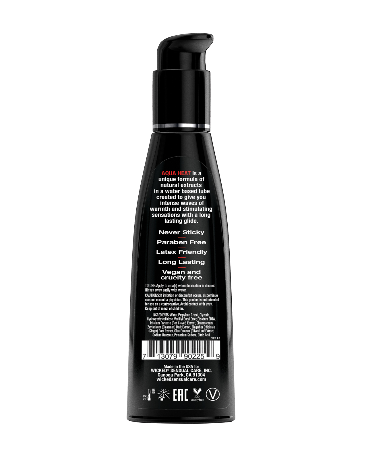 Heat up your intimate moments with Wicked Aqua Heat personal lubricant. Carefully crafted with a unique blend of warming elements that will thrill your erogenous zones, our advanced water-based lubricant increases personal moisture for silky sensations. Let the fire build as waves of warmth stimulate and excite. Indulge in this highly arousing personal lube with a partner or alone.