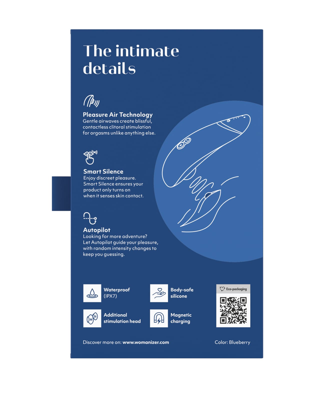 Womanizer PREMIUM 2 with the original Pleasure Air technology is our most luxurious creation yet – truly the Prada of sex toys, the ultimate toy for women who are looking for more than just another device to play with. With more intensity levels than ever before and an improved Autopilot function to take you on new, unpredictable adventures, PREMIUM 2 is the purest pleasure at the highest quality. 14 Intensity levels – Whether you prefer soft and gentle or powerful and intense, or something in between – your next orgasm is just the push of a button away. The intensity levels are perfectly balanced and offer the right setting for your every mood. Extra Stimulator Head – We know that every body is different and beautiful! For this reason, every box includes two sizes of stimulator heads to ensure that everyone can enjoy their WOMANIZER. Autopilot 2.0 – When active, your toy will alternate between intensity levels and keep you on your toes. Sometimes intense, sometimes gentle – always extraordinary. Our Autopilot mode was developed in response to feedback from our testers – an improved feature that users love. Smart Silence – Innovative Smart Silence Technology lets you indulge in your desire. The toy only starts when it meets your skin. If you’re not using it, the toy goes into standby mode. This not only makes the toy quieter to use but keeps you in the moment without distraction. Materials: Body-safe silicone, made without phthalates, BPA or latex Dimensions: 155 mm x 50 mm x 35 mm USB rechargeable Run Time – 240 min Charge Time – 120 mins IPX7 Waterproof. Five Year Warranty